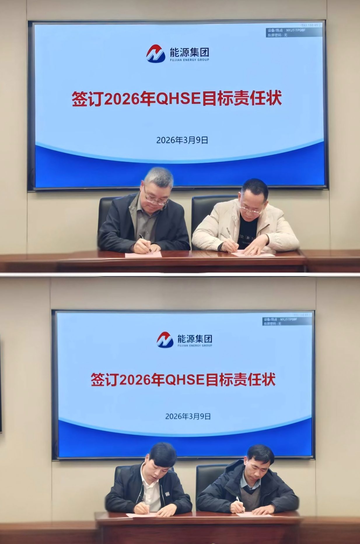 3月9日,能源集团结合3月份QHSE办公例会,举行2026年度QHSE目标责任书签订仪式。